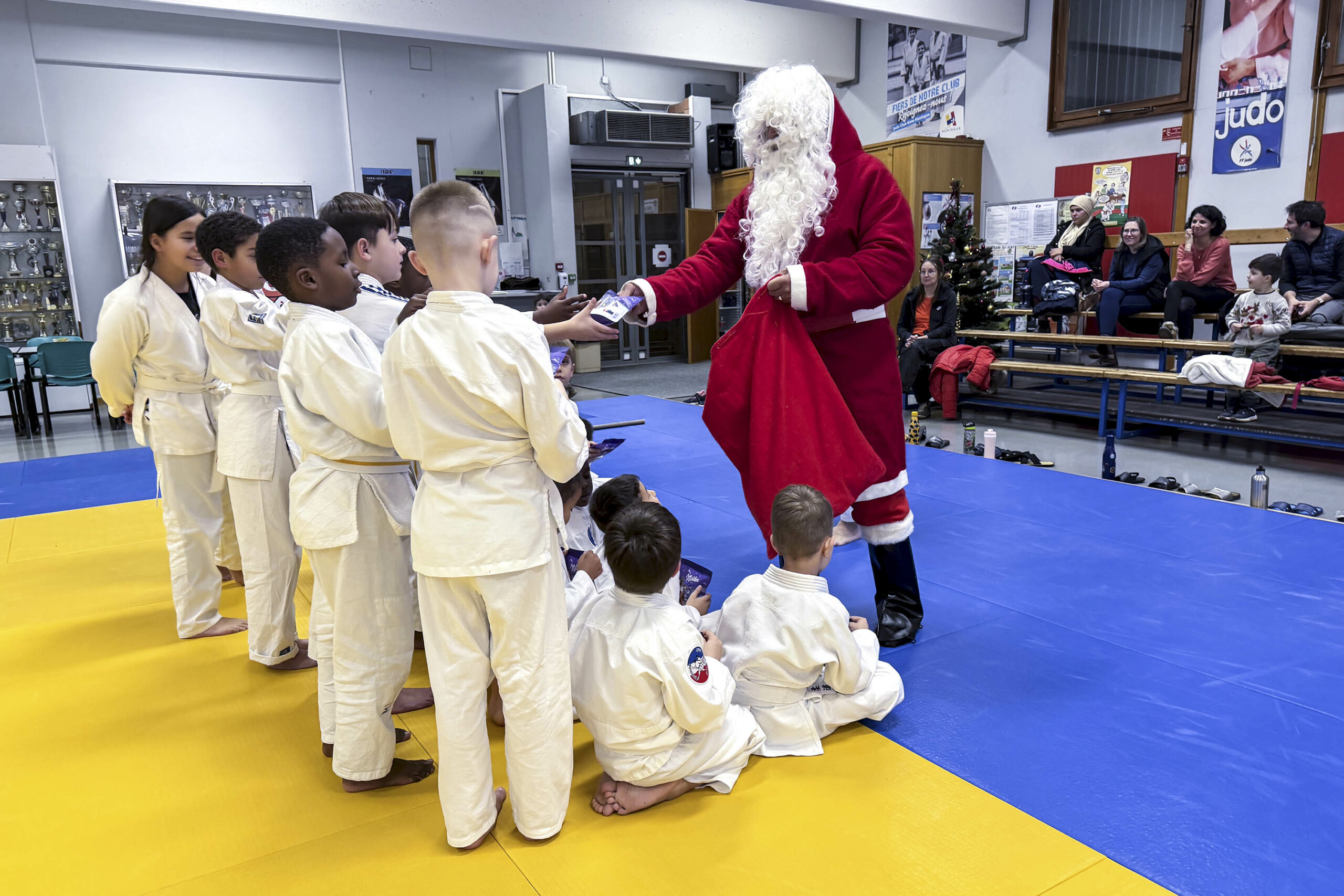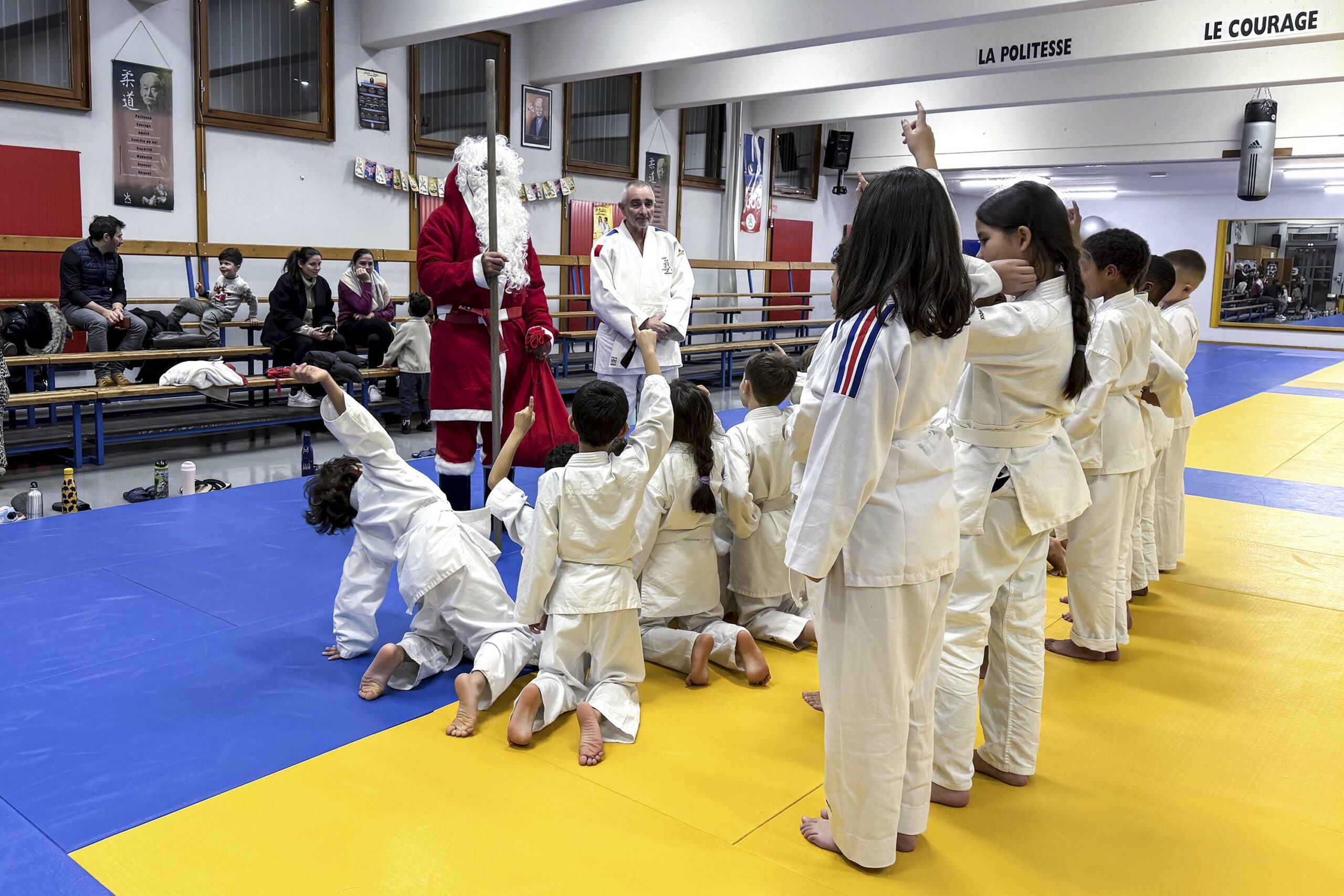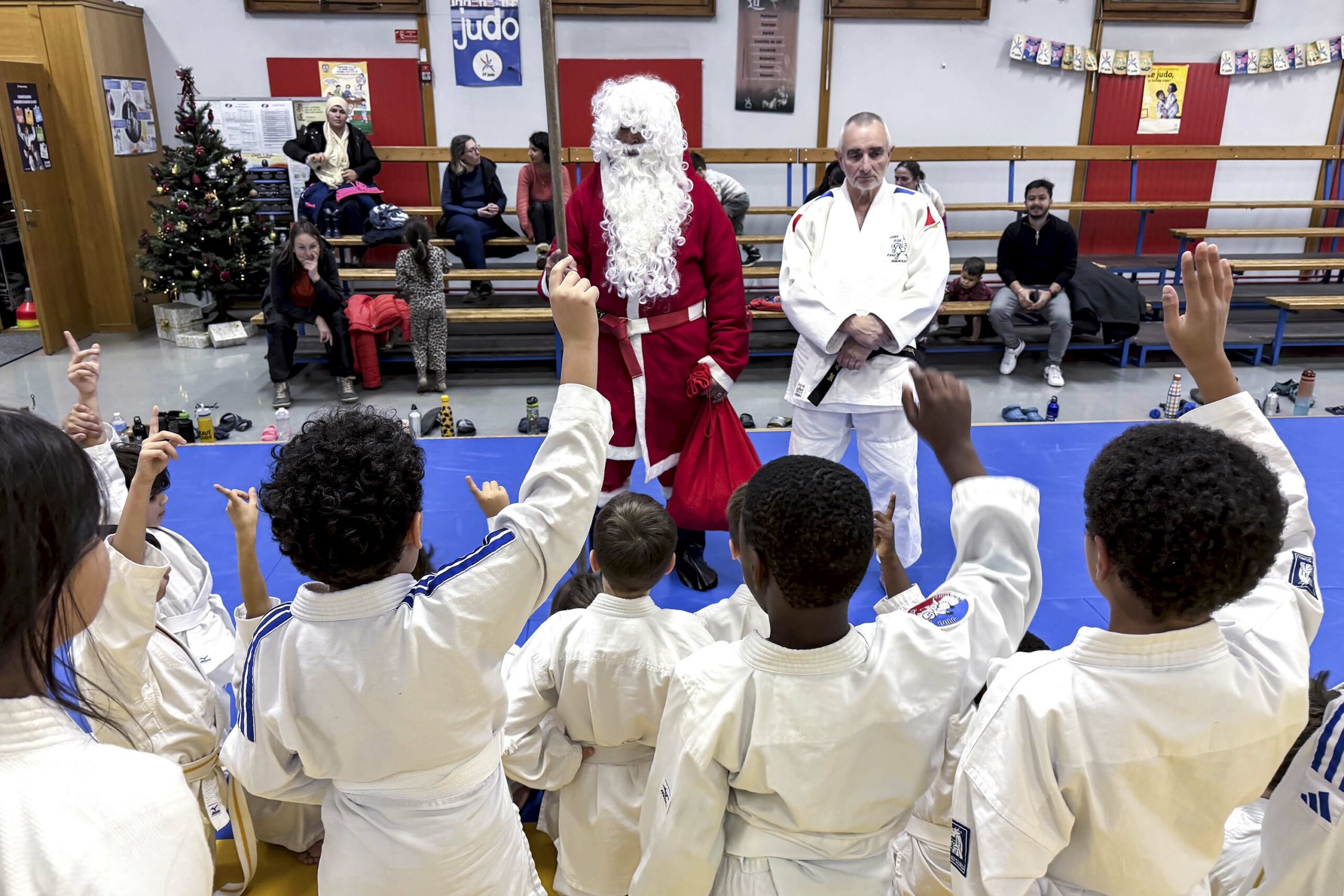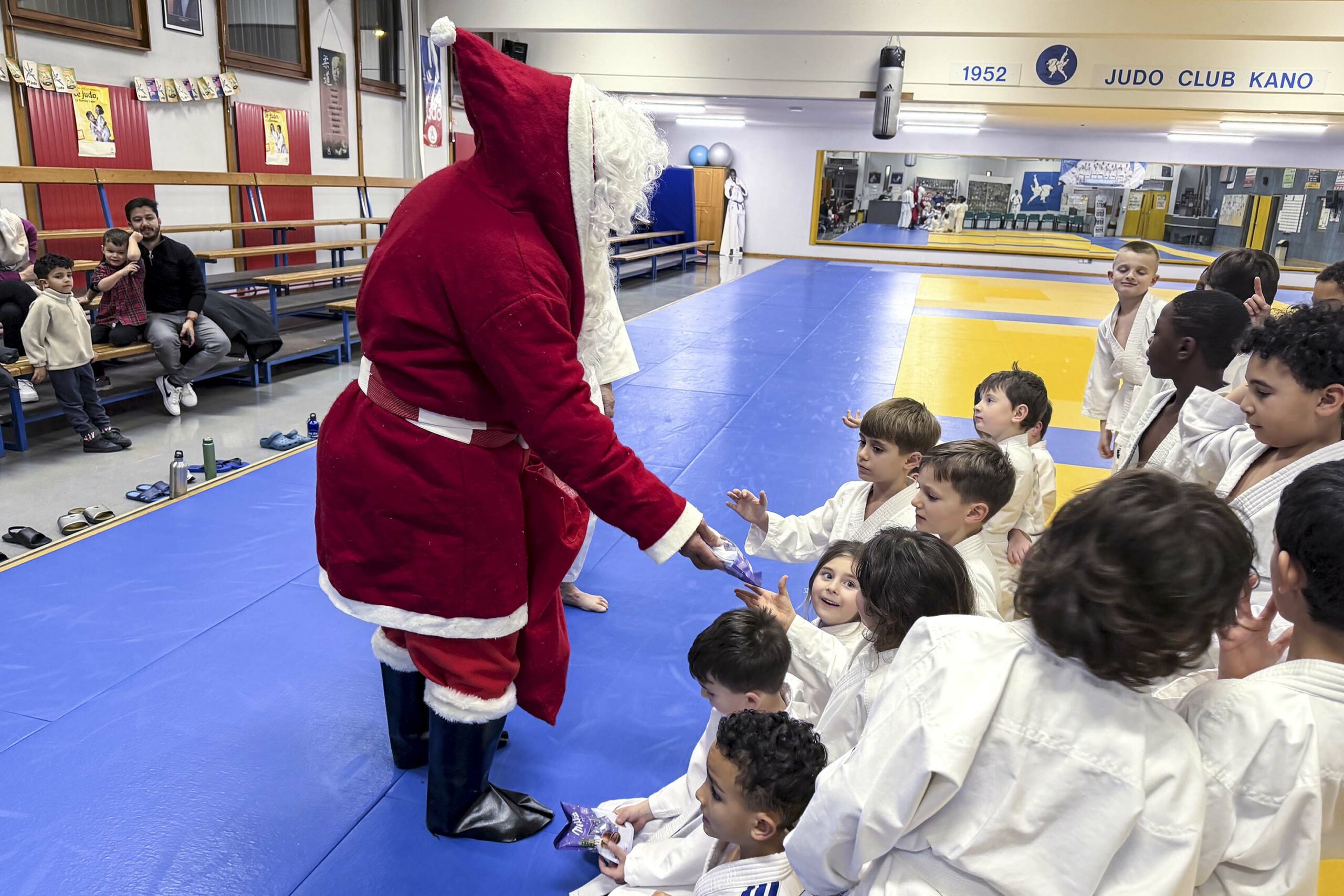 Du lundi au jeudi, chaque groupe d’enfants a vécu son moment de fête. Une parenthèse enchantée où les judokas en herbe, les petits du mercredi et ceux du jeudi ont vu apparaître le Père Noël en personne, qui leur a distribué de délicieux trésors de saison : manalas tout juste sortis de l’esprit de Noël, friandises gourmandes et chocolats savoureux ! De simples attentions, mais tellement précieuses… celles qui illuminent les regards et réchauffent les cœurs.