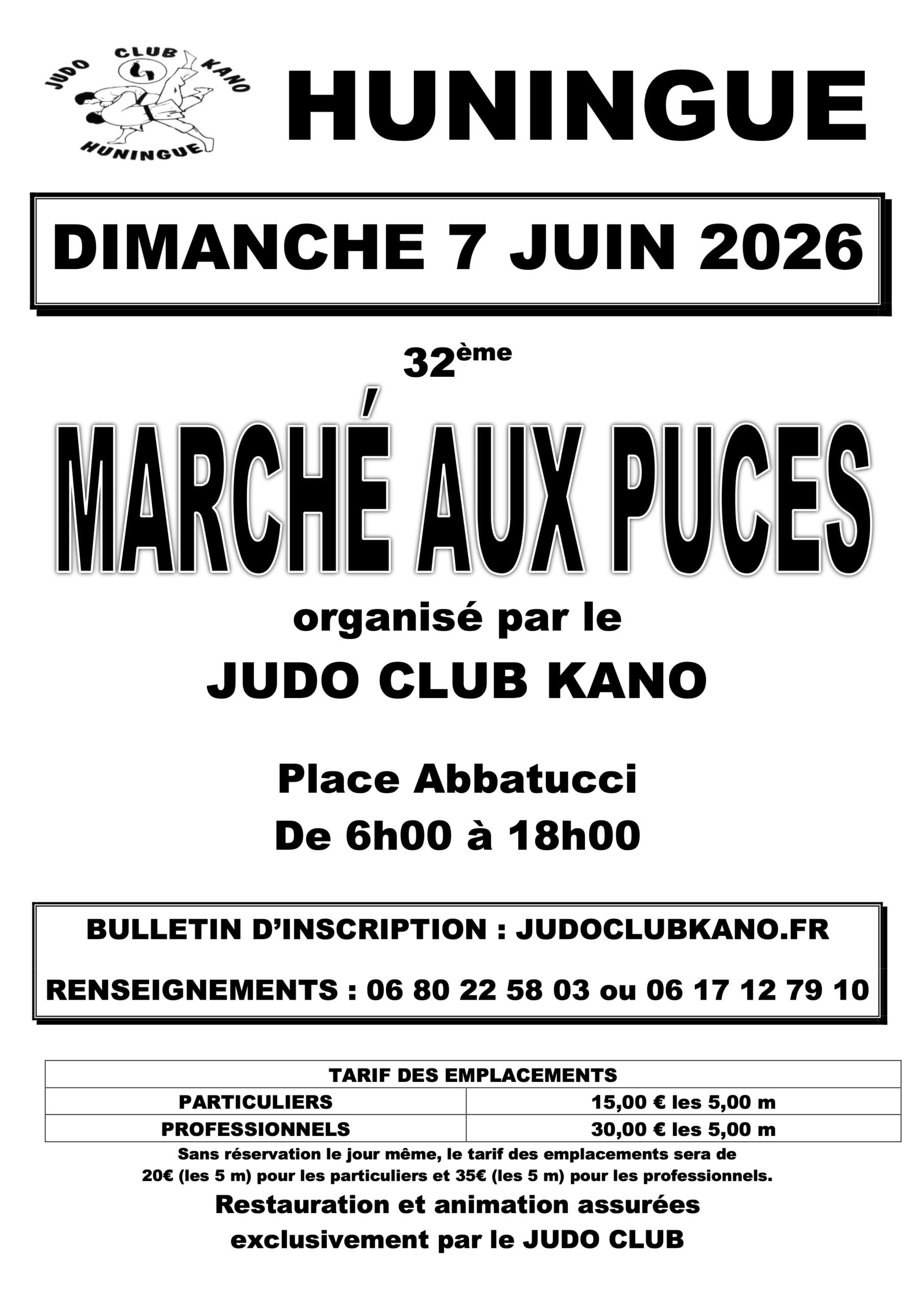 L’édition 2026 de notre marché aux puces se tiendra le dimanche 7 juin 2026 sur la Place Abbatucci à Huningue. Nous vous proposons des emplacements pour vos stands (voir affiche ci-dessous). Pour une organisation optimale, nous vous demandons de bien vouloir vous inscrire au préalable (voir formulaire ci-contre : MP2026 – Formulaire d’inscription).